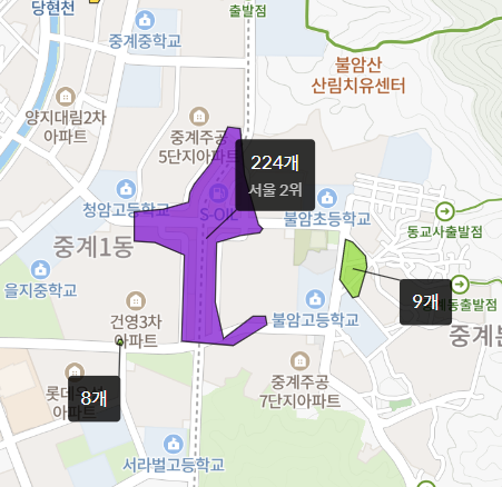 중계동 학원가 vs 평촌 학원가 (규모 비교) / 출처 : 호갱노노